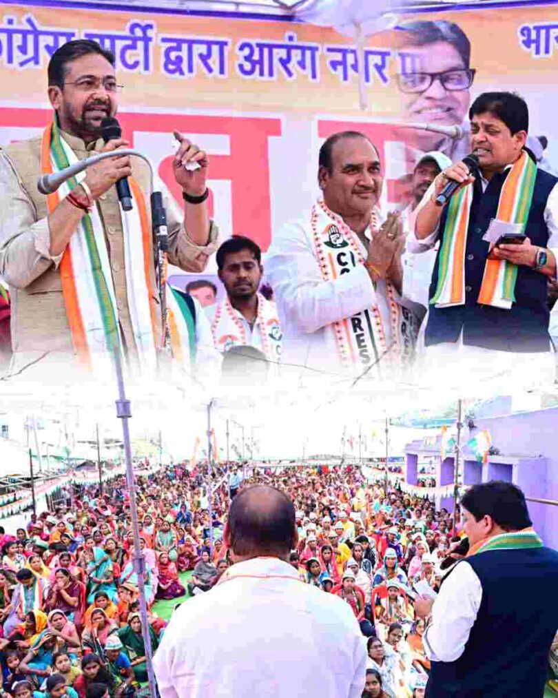 आरंग: नगरीय निकाय चुनाव में मतदान के लिए अब कुछ ही दिन शेष बचे है।ऐसे में राजनीतिक दल मतदाताओं को लुभाने के लिए अपनी पूरी ताकत झोंक रही है।शनिवार को आरंग में कांग्रेस ने एक बड़ी सभा आयोजित की जिसमें कांग्रेस के राष्ट्रीय सचिव और सह प्रभारी विजय जांगिड़, पूर्व मंत्री डॉ शिवकुमार डहरिया और वरिष्ठ कांग्रेस नेता सुरेंद्र शर्मा ने सभा को संबोधित कर आरंग नगर पालिका से कांग्रेस के अध्यक्ष प्रत्याशी मंगलमूर्ति अग्रवाल और सभी 17 वार्डो के पार्षद प्रत्याशियों के पक्ष में मतदान करने की अपील की।