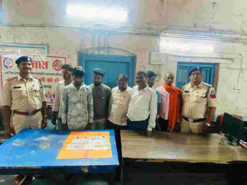 आरंग: वरिष्ठ पुलिस अधीक्षक रायपुर संतोष सिंह, एएसपी रायपुर ग्रामीण कीर्तन राठौर और सीएसपी लंबोदर पटेल के मार्गदर्शन में थाना प्रभारी राजेश सिंह के नेतृत्व में आरंग पुलिस अपराधो को रोकने लगातार में लगातार कार्य कर रही है और दोषियों को जेल भेज रही है। इसी कड़ी मे आरंग पुलिस ने मुखबिर की सूचना पर आरंग के वार्ड नं 10 में केवशी साहू पारा के डबरी के पास जुआ खेल रहे 07 जुआरियों को पकड़ने में सफलता पाई है।हालांकि कुछ जुआरी भागने में सफल रहे। पकड़े गए जुआरियों में