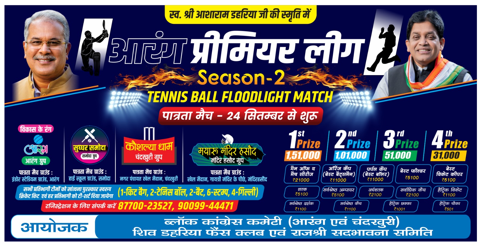 *आरंग प्रीमियर लीग सेकेण्ड सीजन का 24 सितंबर से होगा आगाज*