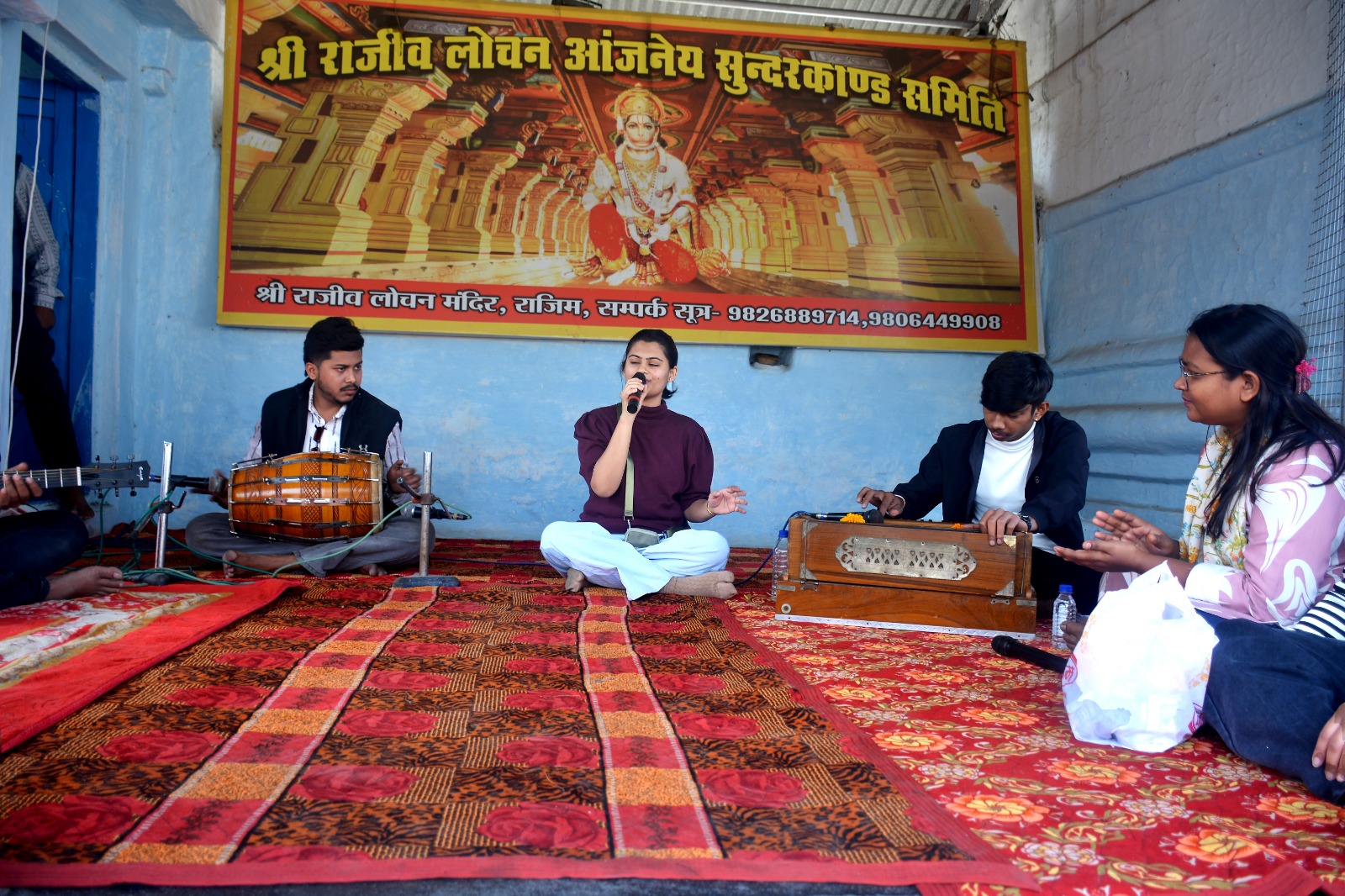- राजिम (छत्तीसगढ़)। छत्तीसगढ़ की धार्मिक एवं सांस्कृतिक नगरी राजिम स्थित प्राचीन श्री राजीव लोचन मंदिर में आज प्रातः भगवान श्री राजीव लोचन के सान्निध्य में एक अत्यंत भावपूर्ण एवं आध्यात्मिक प्रातःकालीन भजन संध्या का आयोजन संपन्न हुआ। इस अवसर पर कमला देवी संगीत महाविद्यालय, रायपुर के छात्र-छात्राओं ने अपने मधुर स्वरों के माध्यम से भगवान श्री राजीव लोचन के चरणों में भक्ति अर्पित की।