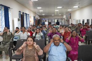 रायपुर:- राष्ट्रीय प्रौद्योगिकी संस्थान रायपुर में 08 अगस्त 2023 को मानविकी और सामाजिक विज्ञान विभाग द्वारा “हर घर ध्यान” अभियान का आयोजन किया गया। यह कार्यक्रम भारत सरकार के संस्कृति मंत्रालय की एक पहल है और आर्ट ऑफ लिविंग द्वारा आयोजित है। संस्थान के निदेशक डॉ. एन. वी. रमना राव इस कार्यक्रम के मुख्य अतिथि रहे। कार्यक्रम के मुख्य वक्ता एडवांस्ड मेडिटेशन प्रोग्राम टीचर तथा एनआईटी रायपुर के सन 1981 के छात्र रह चुके श्री अश्विनी कुमार जग्गी जी रहे। कार्यक्रम में भौतिकी विभाग की विभागाध्यक्ष डॉ. साधना अग्रवाल, मानवता तथा सामाजिक विज्ञान विभाग की विभागाध्यक्ष डॉ. जया द्विवेदी, मैकेनिकल विभाग की प्रोफेसर डॉ. एस. एल. सिन्हा, मानवता तथा सामाजिक विभाग के शिक्षण सहायक श्री सूरज निषाद, अन्य फैकल्टी सदस्य छात्र- छात्राएं तथा पीएचडी स्कॉलर भी उपस्थित रहे। कार्यक्रम का समन्वयन मानविकी और सामाजिक विज्ञान विभाग की योगा फैकल्टी डॉ. मंजू शुक्ला द्वारा किया गया |