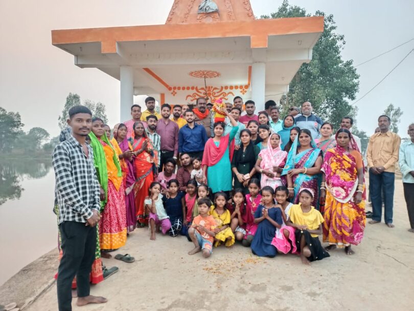 आरंग_____@ भगवान श्री राम की जन्मभूमि अयोध्या से पहुंची अक्षत कलश मंगलवार दोपहर 3 बजे रीवा गांव पहुंची जहां स्थानीय राम भक्तों ग्राम वासियों ने जयकारों के उसके स्वागत किया और पवित्र अक्षत कलश का लखोली बस स्टैंड में पुष्प वर्षा के साथ गांव में गली में भ्रमण कर राम जानकी मंदिर में पूजा अर्चना कर मंगल पाठ किया गया।जिसमें प्रमुख रूप से श्री सुरेंद्र नशीने,केशो राम धीवर, लालुराम देवांगन,विष्णु धीवर खेलवान यादव, परमानंद यादव,अर्जुन धीवर,विश्राम चौहान,झड़ी राम धीवर, सुकालू राम धुव्र,बोधन साहू, अर्जुन साहू,टीकाराम धीवर,मुकेश धीवर शोमनाथ साहू, शैलेंद्र साहू, सालिकराम चंद्राकर,तोरण साहू, चंद्रहास (गोलू )चंद्राकर,तिलक विश्वकर्मा,कामता सिन्हा,अजय साहू,त्रिलोक चंद्राकर,प्रफुल साहू,त्रिलोक धीवर,विष्णु यादव,प्रदीप साहू,रूपेश चंद्राकर,लुकेश्वर सारथी, महेंद्र यादव, टुकेश सेन नोमेश साहू,संदीप धीवर,चेतन साहू धीवर,सितु सेन,अजय साहू ने इस कार्य को सफल रूप से बनाया
