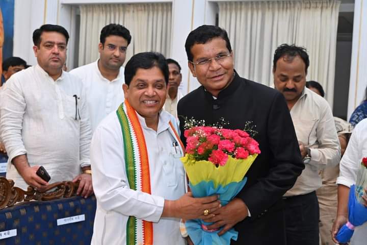 रायपुर: छत्तीसगढ़ कांग्रेस कमेटी के पूर्व अध्यक्ष एवं कोंडागांव के विधायक मोहन मरकाम ने आज राजभवन में मंत्री पद की शपथ ली।कैबिनेट मंत्री बनने पर प्रदेश के नगरीय प्रशासन विकास एवं श्रम मंत्री डॉ.शिवकुमार डहरिया ने मोहन मरकाम को बधाई देते हुए नवीन जिम्मेदारी को बेहतर तरीके से निभाने के लिए शुभकामनाएं दी।