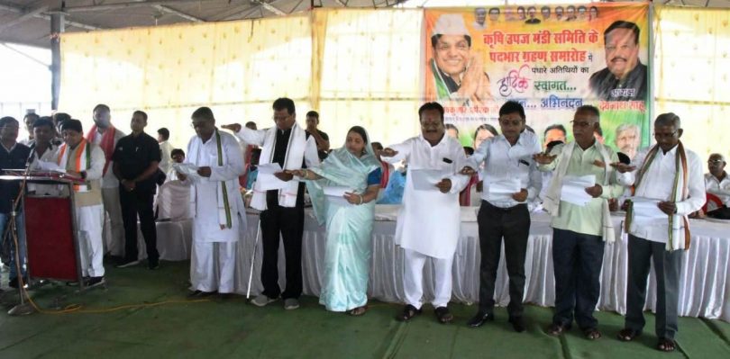 नगरीय प्रशासन एवं विकास तथा श्रम मंत्री डॉ. शिवकुमार डहरिया ने रायपुर जिले के अंतर्गत कृषि उपज मंडी समिति आरंग की भारसाधक समिति के नवनियुक्त अध्यक्ष श्री देवनाथ साहू, नव नियुक्त उपाध्यक्ष श्री हिरेश कुमार चंद्राकर और सदस्य श्रीमती कुसुमलता साहू, श्री खिलेश कुमार चेलक, श्री सहदेव धीवर, श्री मुरारी यादव एवं सदस्य व्यापारी प्रतिनिधि मनीराम पटेल को शपथ दिलायी। इस अवसर पर बड़ी संख्या में कृषि उपज मंडी क्षेत्र आरंग के किसान और व्यापारी शामिल हुए।
