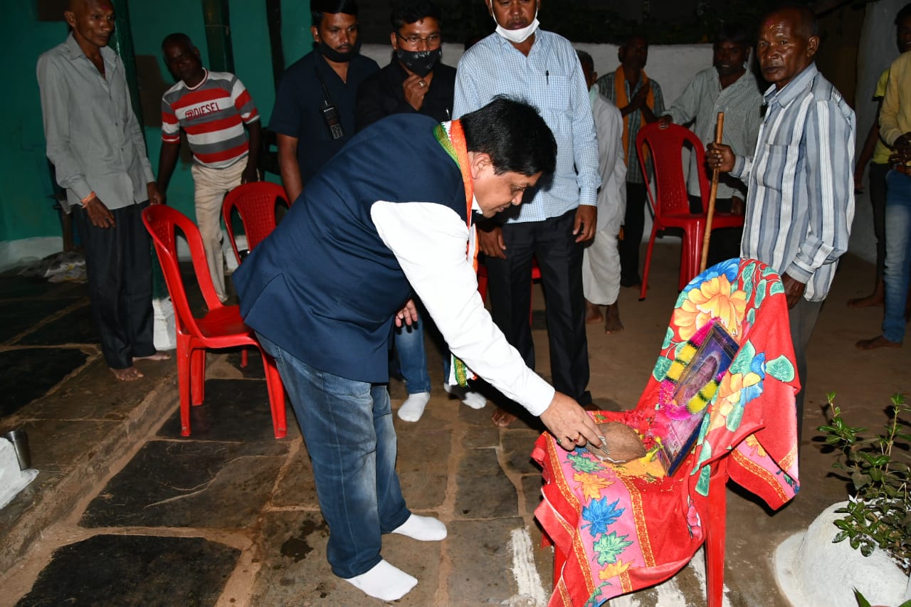 रायपुर, 3 नवम्बर 2020/ नगरीय प्रशासन एवं श्रम मंत्री डॉ. शिवकुमार डहरिया ने आज आरंग विधानसभा क्षेत्र के अंतर्गत ग्राम रींवा (लखौली) में स्वर्गीय श्री राकेश साहू और स्वर्गीय श्रीमती देवसिर ध्रुव की दशगात्र कार्यक्रम में शामिल हुए। डॉ डहरिया ने ग्राम रींवा के इन दोनों प्रबुद्धजनों के निधन पर गहरा दुःख व्यक्त किया। डॉ. डहरिया ने स्वर्गीय श्री राकेश साहू और स्वर्गीय श्रीमती देवसिर ध्रुव के छाया चित्र पर पुष्प अर्पित कर उन्हें श्रद्धांजलि दी। मंत्री डॉ. डहरिया ने शोक संतप्त परिवार के प्रति गहरी संवेदना प्रकट करते हुए दिवंगत आत्माओं की शांति के लिए ईश्वर से प्रार्थना की और उनके परिजनों से मुलाकात कर हरसंभव सहयोग का भरोसा दिलाया।