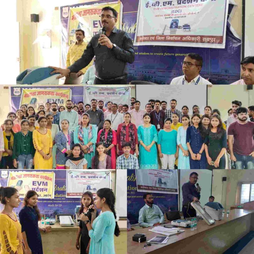 आरंग: शुक्रवार को भारत निर्वाचन आयोग की अभिनव पहल ईवीएम प्रदर्शन एवं मतदाता जागरूकता कार्यक्रम के अंतर्गत मैट्स यूनिवर्सिटी गुल्लू में जागरूकता अभियान चलाया गया जिसमें उपस्थित अनुविभागीय अधिकारी राजस्व अतुल विश्वकर्मा ने लगभग 100 से भी अधिक मतदान करवाया एवं ईवीएम मशीन के बारे में फैली हुई भ्रांतियों को निरर्थक बताते हुए कहा कि मशीन में खराबी आ सकती है किंतु उसका डाटा संरक्षित रहता है, तथा उसका भी प्रोटोकोल होता है।